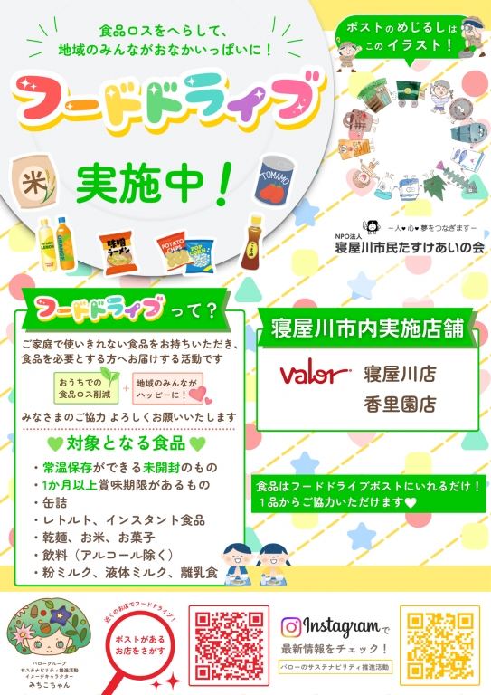 スーパーバロー 寝屋川2店舗でフードドライブがはじまります2026.01.01お知らせ